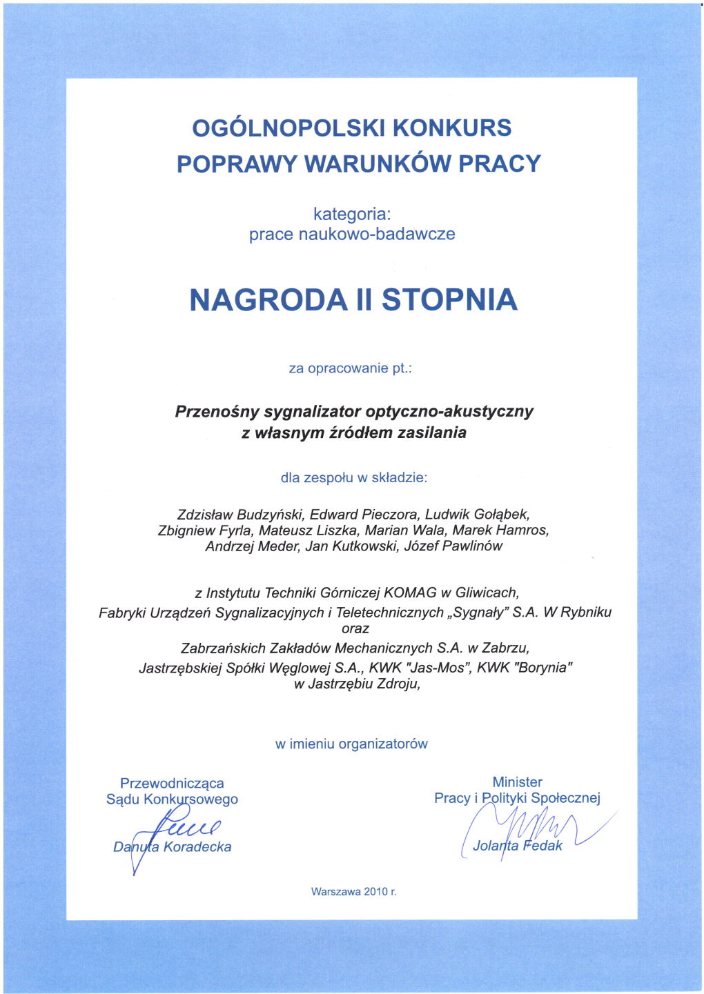 | Ogólnopolski Konkurs Poprawy Warunków Pracy i Międzynarodowa Wystawa Wynalazków i Innowacji 2010 | ||