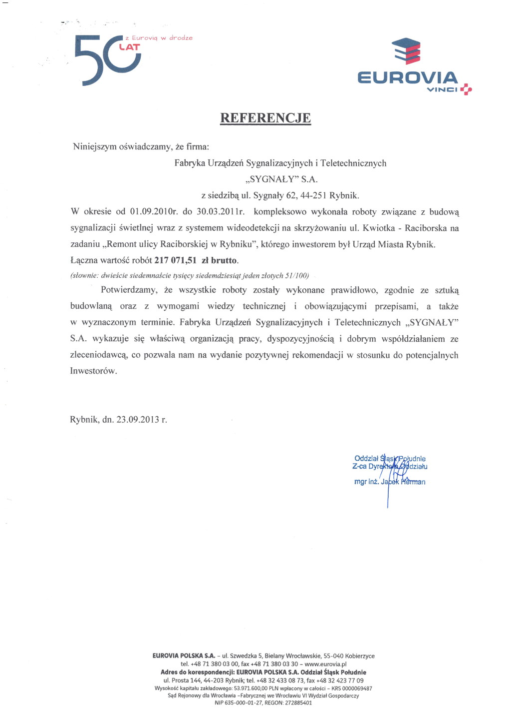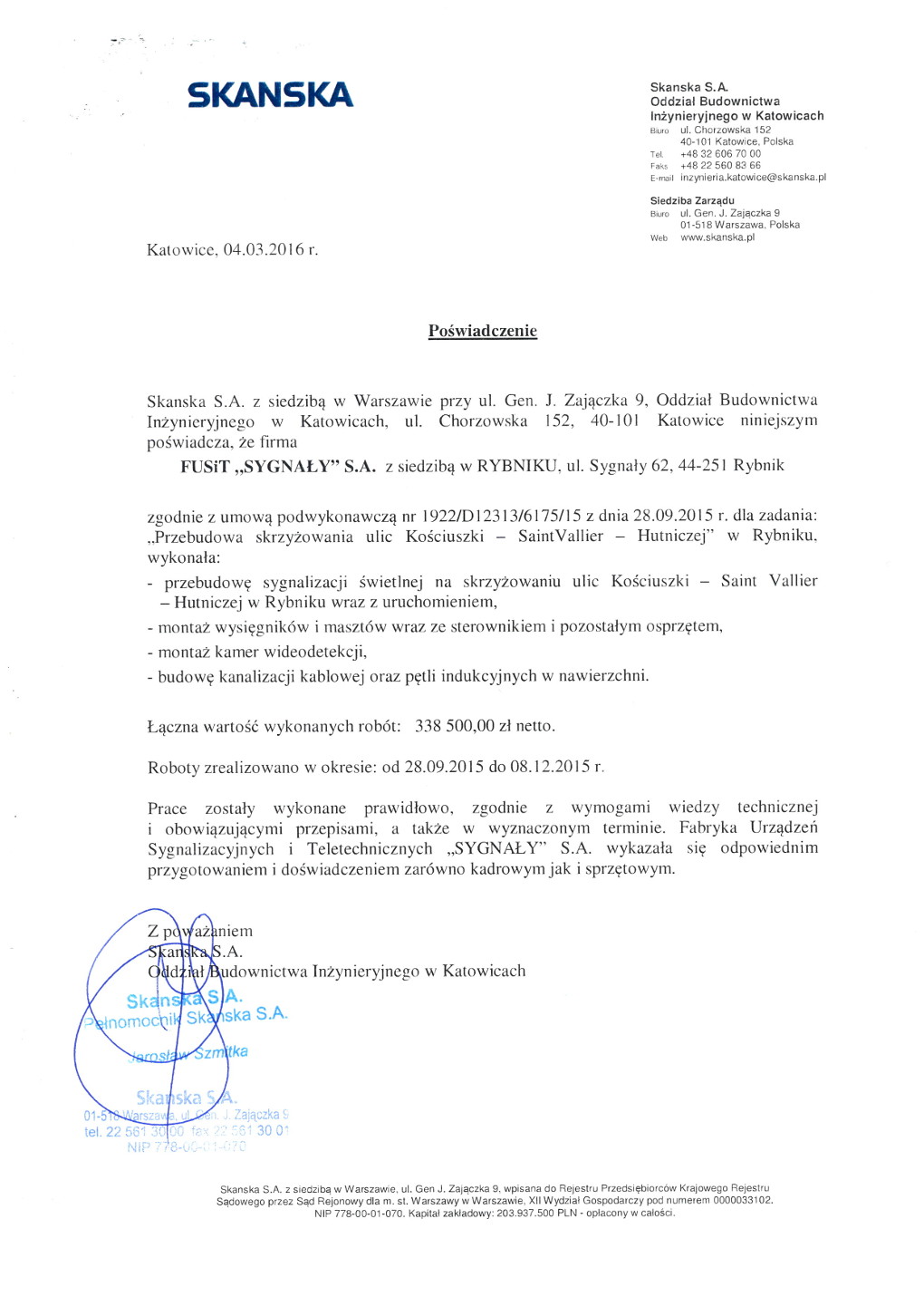 Skanska S.A Oddział Budownictwa Inżynieryjnego