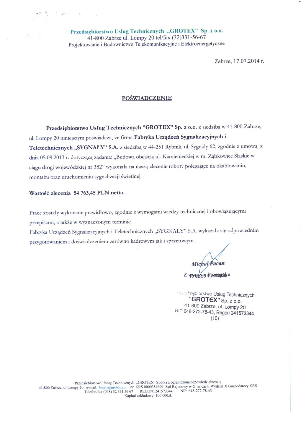 Przedsiębiorstwo Usług Technicznych "GROTEX" Sp. z.o.o.